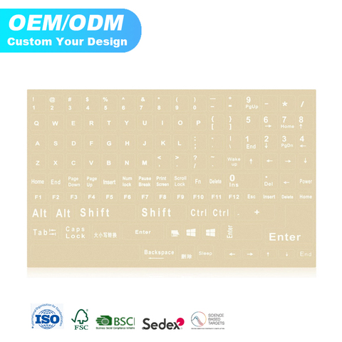 Private Label Tastatur Vinyl Aufkleber Benutzer definierte Sprache PC Universal Letter Keyboard Aufkleber