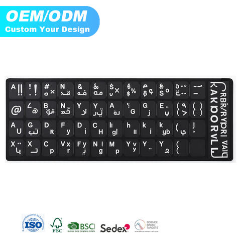 Abnehmbare Hot Sale Selbst klebende wasserdichte Vinyl Laptop Tastatur Aufkleber gedruckte Sprache Arabisch Englisch Tastatur Aufkleber