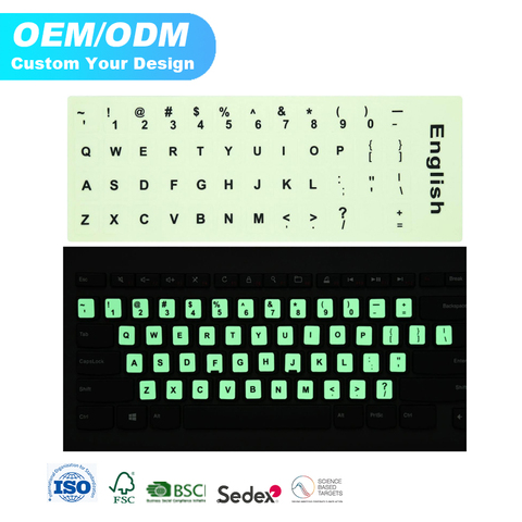 OEM Hot Sales Benutzer definierte Glow Dark PVC Protect Letter Aufkleber Printed Language Keyboard Aufkleber für Laptop